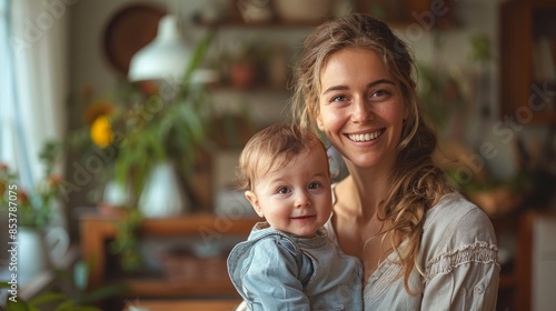 © piumi, Fototapeta premium Frames with family photos on wooden table indoors
