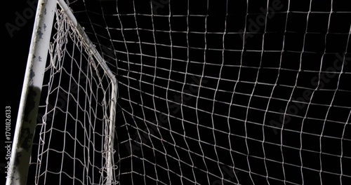 © vectorfusionart, Fototapeta premium Framing white soccer goalpost with net standing on sports field at night, with chipped paint