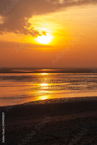 © Thierry Rambaud, Naklejka premium France. Baie de Somme. Coucher de soleil sur l'océan et une plage de sable à marée basse. Sunset over the ocean and a sandy beach at low tide.