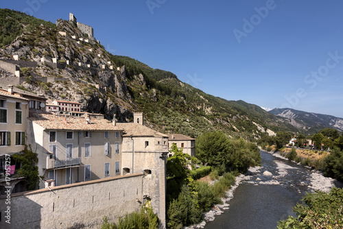 Obraz premium France, Entrevaux: Skyline panoramic view with gorge of river Var and old...