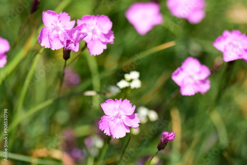 © romrom74, Fototapeta premium France, illustration flowers and half-mourning butterfly in summer at sunset.