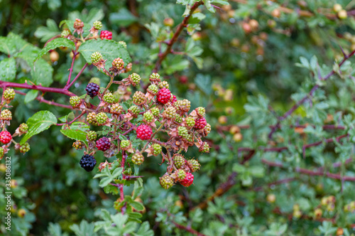 © Thierry Rambaud, Obraz premium France. Mûres sauvages rouges et noires.