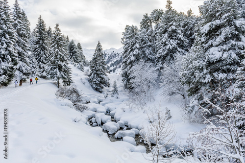 © Criley, Naklejka premium France, Savoie (73), Meribel, balade à travers les sapins sous la neige.