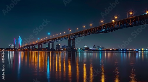 © Alexander, Fototapeta premium Francis scott key bridge and skyline at night with the lights on