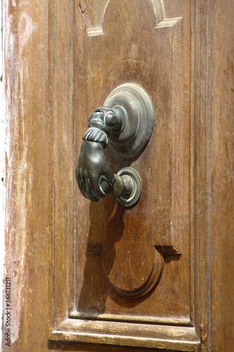 Fototapeta premium Francja , Prowansja , sierpień 2019 , kołatka na starych drzwiach kamienicy w Nimes