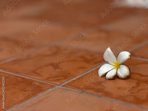 © ATIPPORN, Fototapeta premium frangipani flower on wood