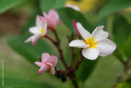 Fototapeta premium Frangipani or Plumeria flowers blooming in the garden