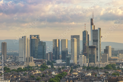 Fototapeta premium Frankfurt aerial view city skyline at business district skyscraper, Frankfurt...