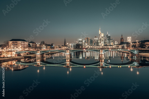 © Anita Gläßner, Naklejka premium Frankfurt at night, skyline reflection