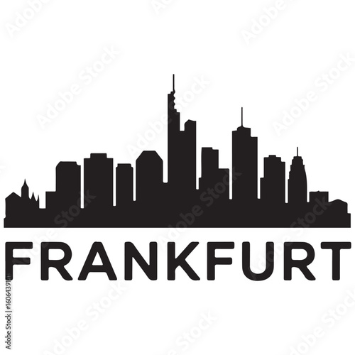 Naklejka premium Frankfurt skyline silhouette. Black Frankfurt city. Vector black silhouette....