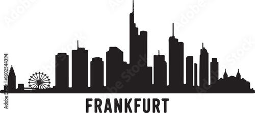 Obraz premium Frankfurt Skyline Silhouette Vector with Messeturm and Financial District