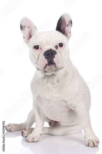 © absolutimages, Fototapeta premium Französische Bulldogge gähnend mit lila Halstuch isoliert