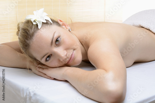 © Dan Race, Obraz premium Frau bei Massage-Behandlung