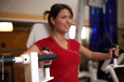 © Christian Schwier, Obraz premium Frau beim Schultertraining