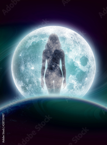 © Artenauta, Naklejka premium Frau im Mond