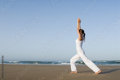 © Jonas Glaubitz, Fototapeta premium Frau macht Yoga am Strand