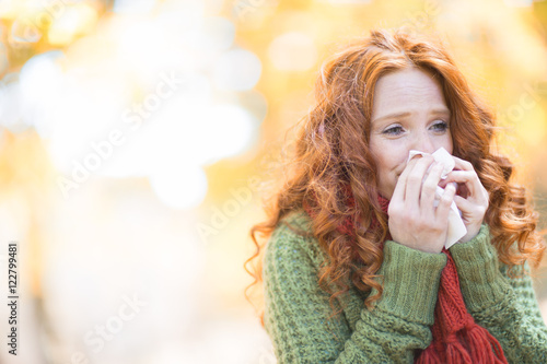 Naklejka premium Frau mit Erkältung im Herbst