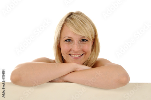 Fototapeta premium Frau mit leerer Werbetafel