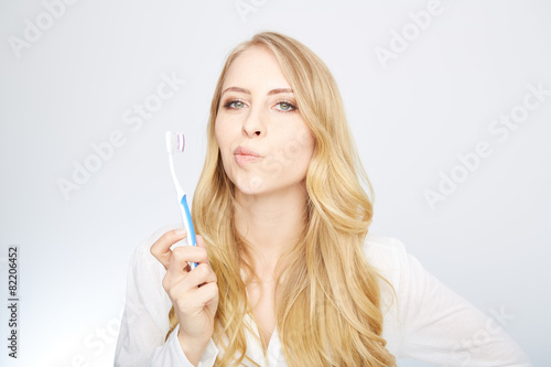 Obraz premium frau mit zahnbürste