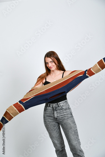 Naklejka premium frau, pullover, schönheit, gestalten, leitbild, leute,