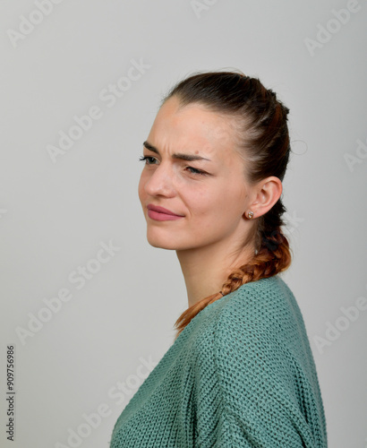 Fototapeta premium frau, schönheit, haar, gesicht, lächelnd, lächeln, schmerz, ekel, emotional,...
