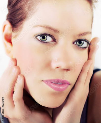 © tbel, Fototapeta premium Frau streichelt ihr Gesicht