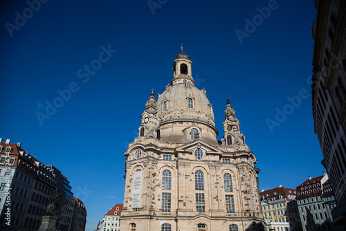 Fototapeta premium Frauenkirche of Dresden, blue sky, east