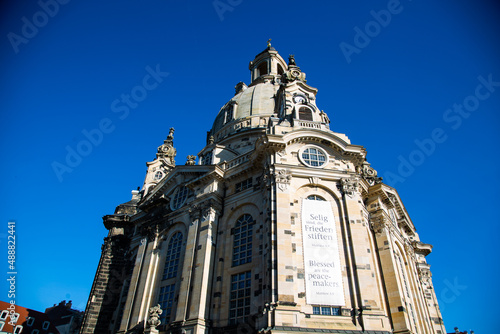 Fototapeta premium Frauenkirche of Dresden, blue sky, east