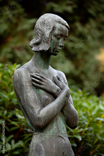 © hachmeister, Obraz premium Frauenstatue auf einem Friedhof