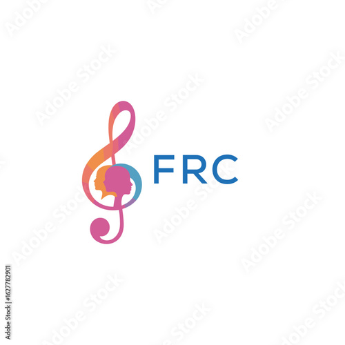 Naklejka premium FRC “Colorful music logo with human faces and treble clef design” FRC Later...