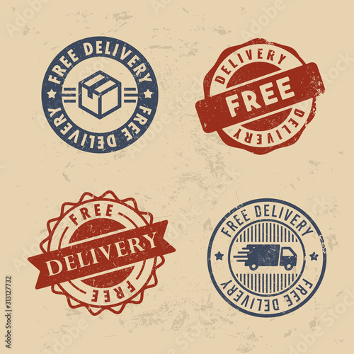 © Danhood, Obraz premium Free Delivery stamp vector set