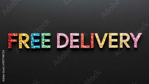 Fototapeta premium Free delivery word lettering made of colorful glitter shining effect on plain black background