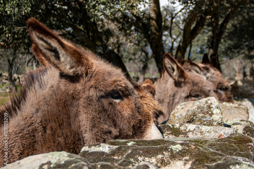 © SaucE ReQuEs, Fototapeta premium Free donkeys in their pasture looking at the camera