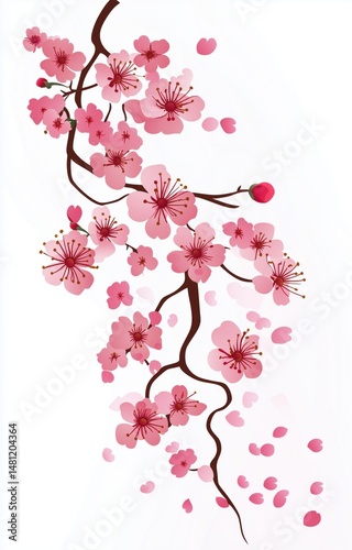 © Yee Suen, Naklejka premium Free hand drawn cherry blossom white background