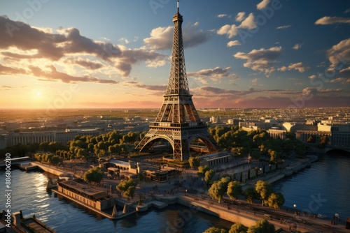 © JONATAS, Naklejka premium Free photo from Eiffel Tower Paris France Watercolor Canvas Art Print, generative IA