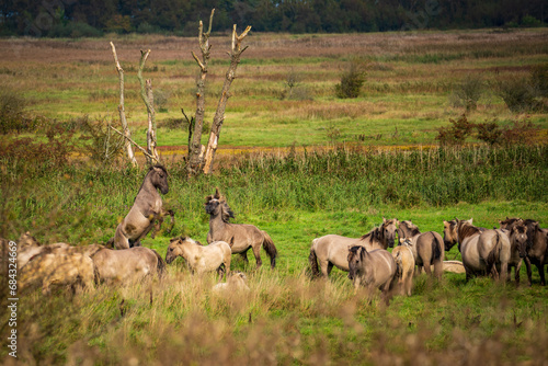 Naklejka premium Free-ranging Koniks in the Geltinger Birk nature reserve on the Baltic Sea in...