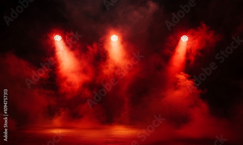 Fototapeta premium Free stage with lights and smoke, Empty stage with red spotlights, conser,...