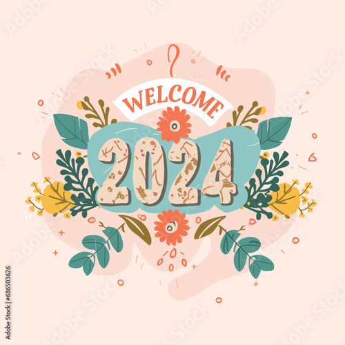Obraz premium Free vector inviting social media post to welcome 2024. AI generative.