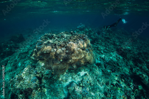 Fototapeta premium Freediver in wetsuit neoprene dive in the ocean