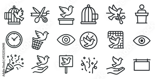 Naklejka premium Freedom and peace icons set – outline, linear, dove and liberty symbols
