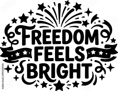 Naklejka premium Freedom feels bright calligraphic lettering with stars and fireworks vector art