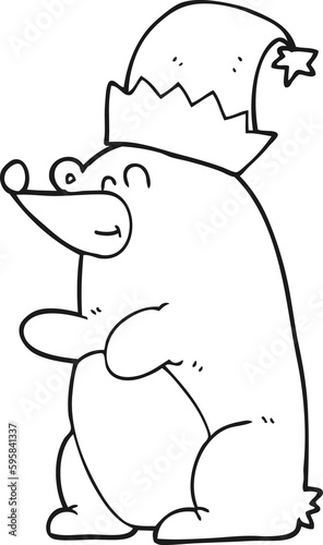 Obraz premium freehand drawn black and white cartoon bear wearing christmas hat