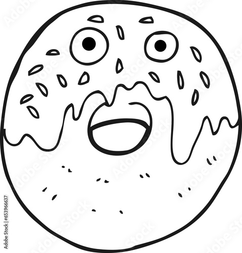 Fototapeta premium freehand drawn black and white cartoon doughnut
