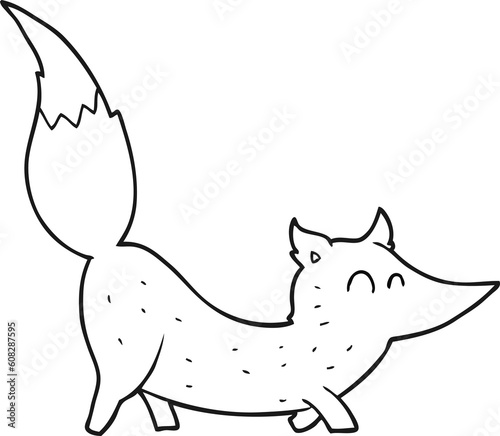 © lineartestpilot, Naklejka premium freehand drawn black and white cartoon little wolf