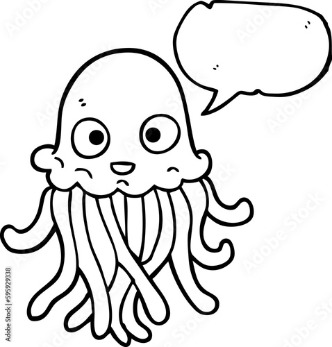 Obraz premium freehand drawn speech bubble cartoon octopus