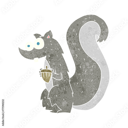 Fototapeta premium freehand retro cartoon squirrel with nut