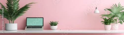 Fototapeta premium Freelance work flat design top view digital nomad 3D render Triadic Color Scheme