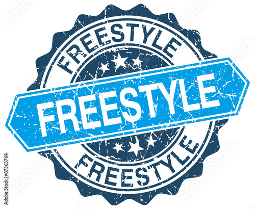Fototapeta premium freestyle blue round grunge stamp on white