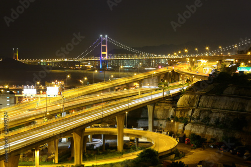 © leungchopan, Fototapeta premium freeway and bridge at night