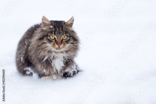 © eugenegg, Fototapeta premium Freezing homeless cat in winter